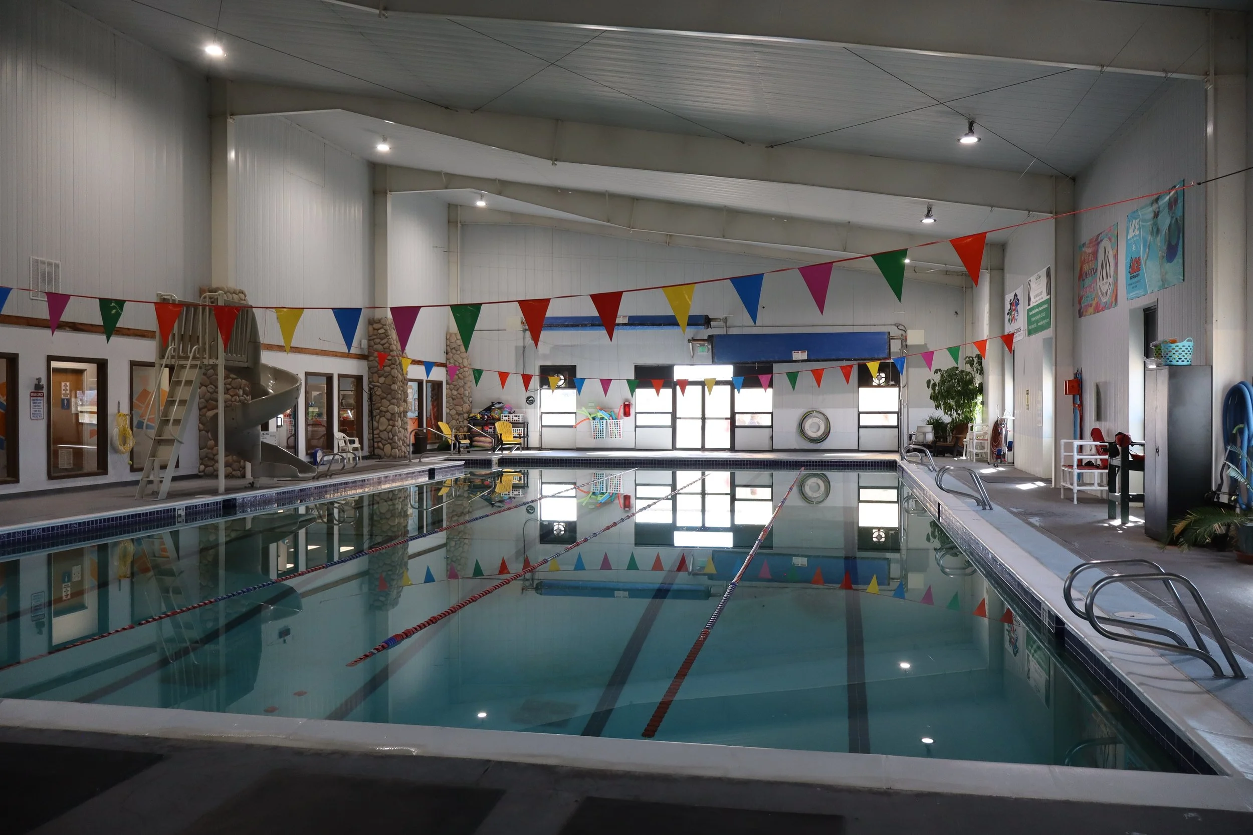 Our four lane 2,758 SF pool supports our free swim, water aerobics, swimming instruction, and water safety programs. And kids of all ages love the water slide.